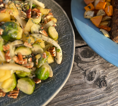 A hearty, savory plant based main featuring lentils and sweet potatoes.
